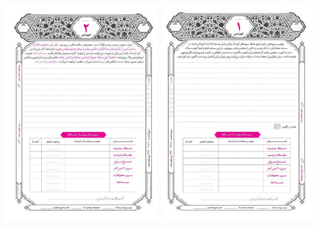 شامل جدول برنامه‌ریزی حفظ روزانه